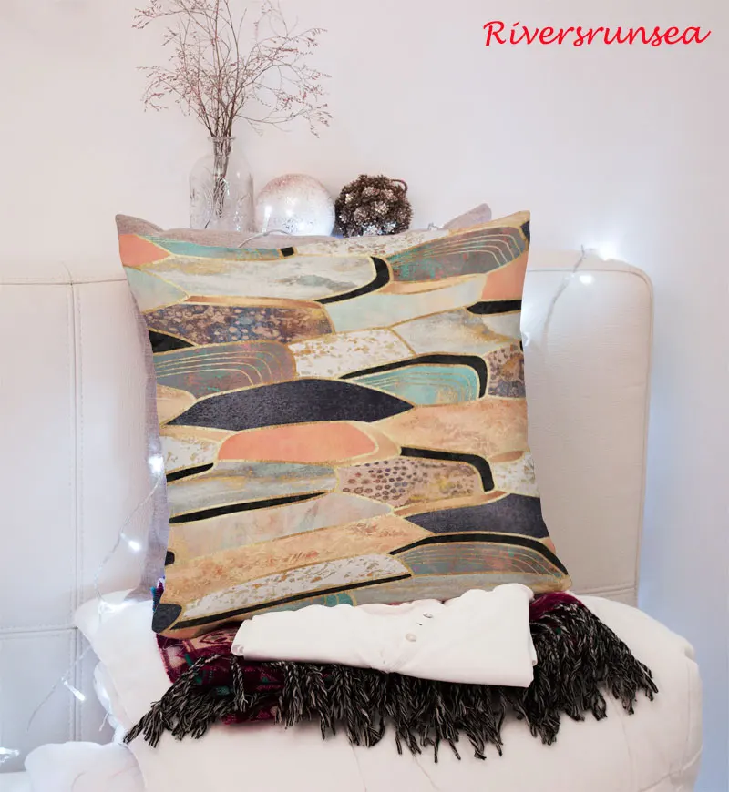 Геометрическая подушка в скандинавском стиле, креативный узор, абстрактный пейзаж, горный бриллиант, Мраморная Подушка для украшения гостиной