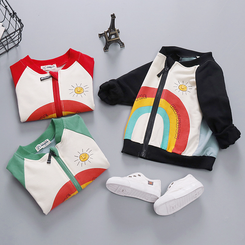 Детская бейсбольная одежда осенне-весенняя куртка с радугой Детский принт с буквами для детей, осенняя одежда для девочек детское пальто короткая спортивная верхняя одежда для детей