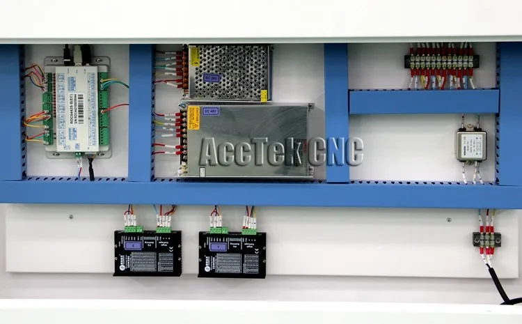 -- С Leashine driver 583, Ruida control board, импульсный источник питания, фильтр, защита от утечки.