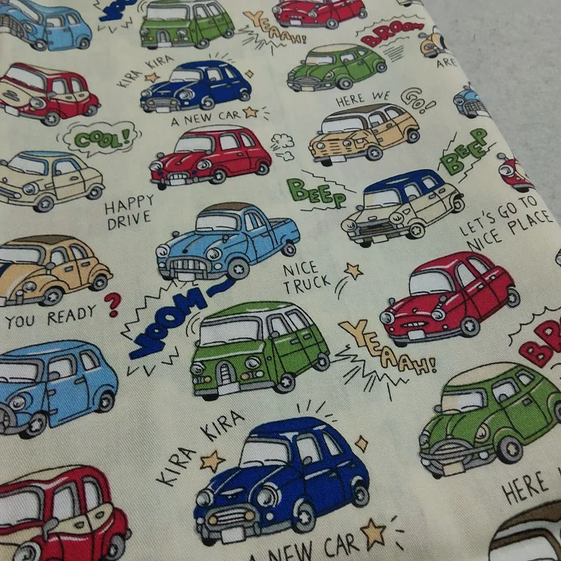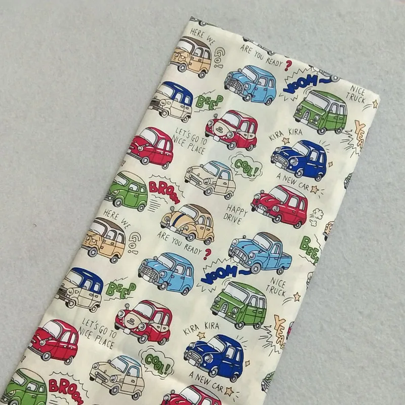 Абсолютно новая бежевая цветная хлопковая ткань с мультяшными машинками, 50x160 см, ткань с машинками, ткань в стиле пэчворк, платье «сделай сам», шитье, стеганое украшение для дома