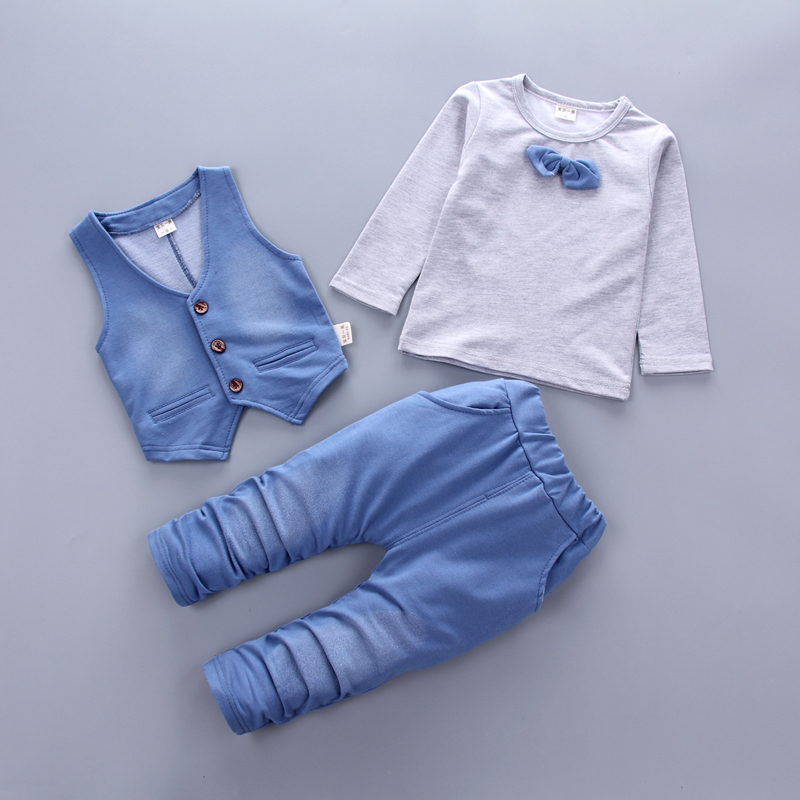 Популярный джинсовый костюм из трех предметов однобортный жилет для мальчиков детская одежда комплект детской одежды, Летний жилет + рубашка + джинсовые штаны