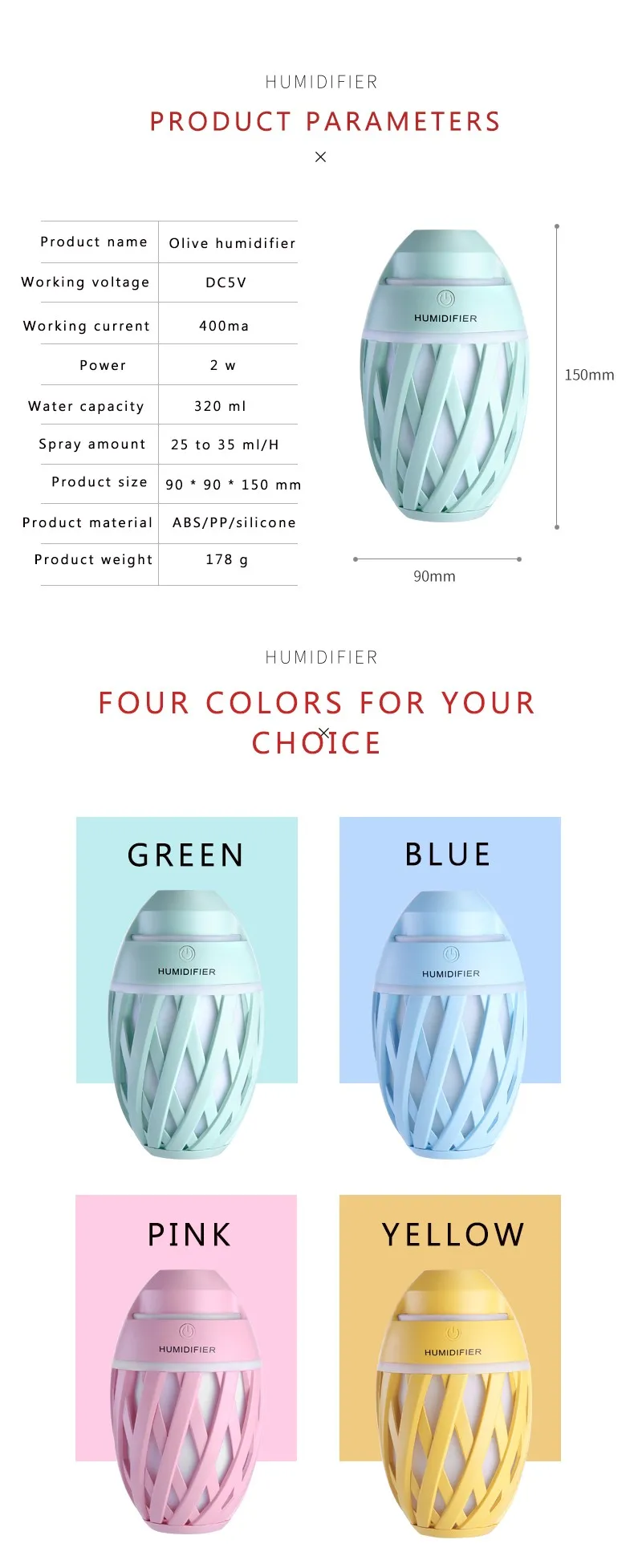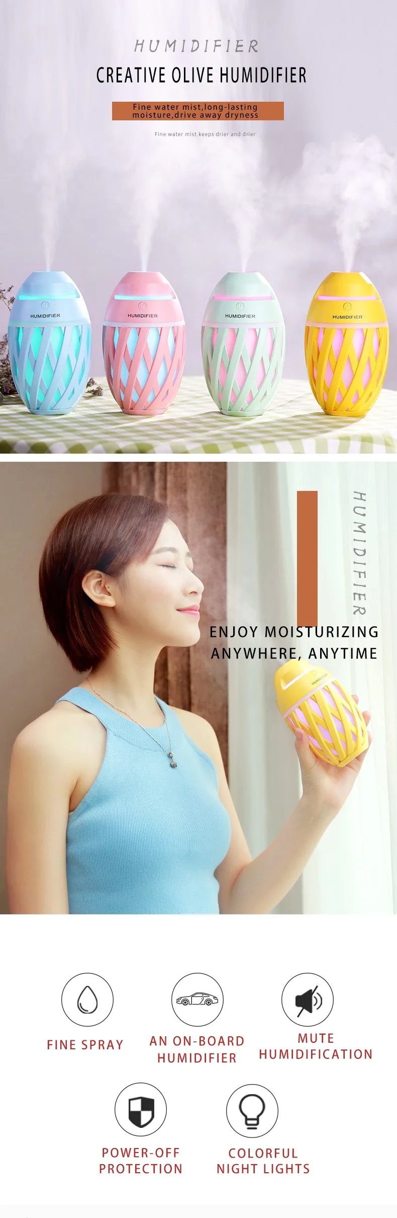 LEARNHAI рождественские подарки в форме оливы увлажнитель портативный мини USB Настольная ультразвуковая лампа LED 320 мл холодный туман Автомобильный увлажнитель воздуха