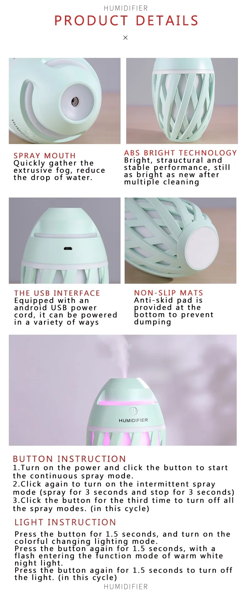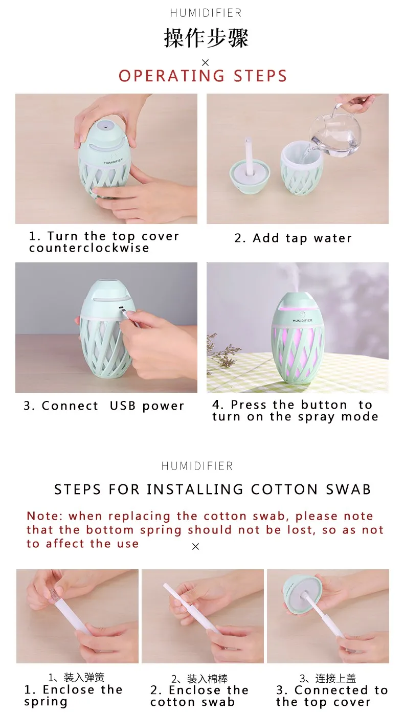 Упаковка включает: увлажнитель + руководство + кабель