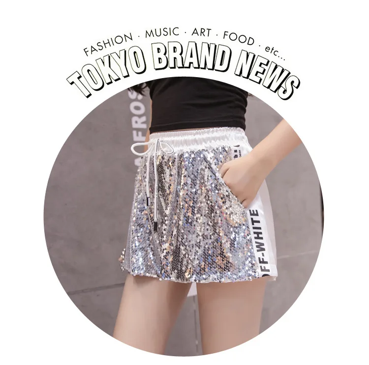 Название продукта: Женские шорты с блестками Inplusni, летние шорты с высокой талией, новинка 2019