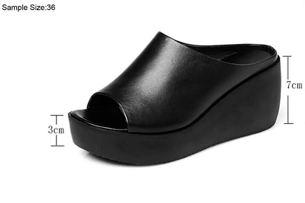 Шлепанцы на танкетке и высоком каблуке; Летние пикантные женские шлепанцы из натуральной коровьей кожи с открытым носком на платформе; модная женская обувь; цвет белый, черный; E063