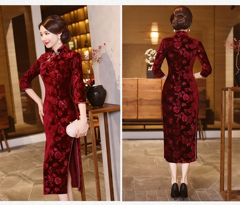 Sheng Coco Восточное бархатное платье Чонсам с китайским принтом Ципао элегантное эластичное бархатное платье-корсет классическое Ципао Китай 4XL