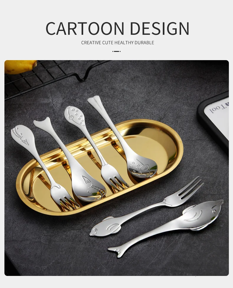 WORTHBUY 2 шт./компл. мультяшная посуда для детей Ложка Вилка многоразовый набор столовых приборов 304 посуда из нержавеющей стали кухонный набор обеденной посуды