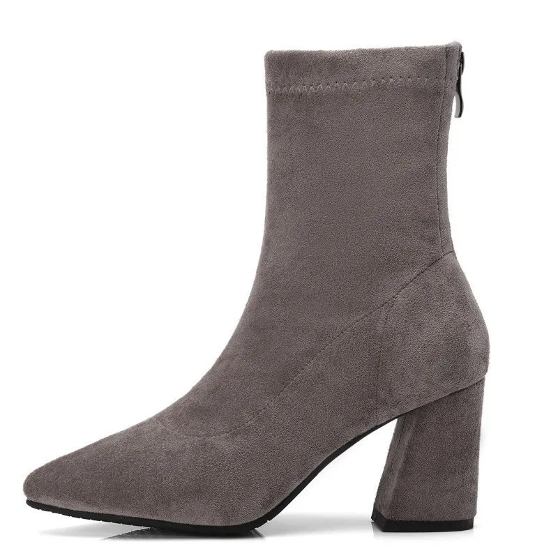 Ботильоны из коровьей замши на высоком каблуке; женские осенние модные элегантные полусапожки с острым носком на толстом каблуке; Цвет черный, хаки; E086