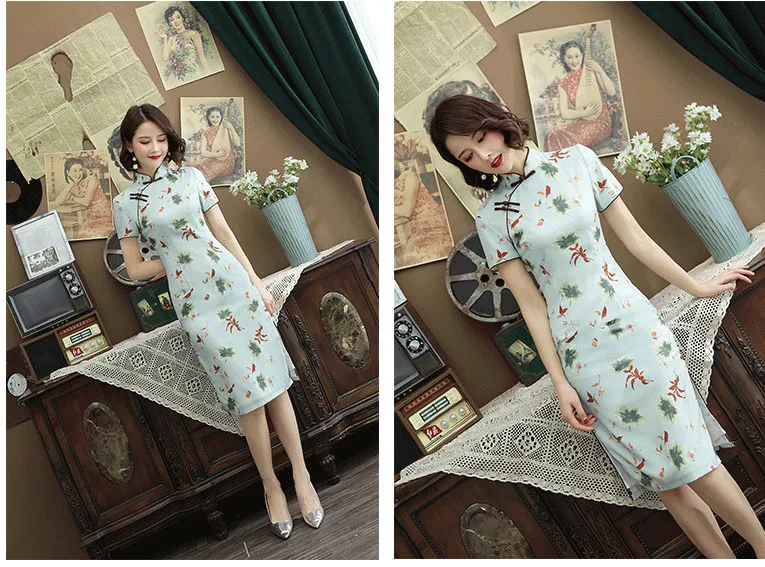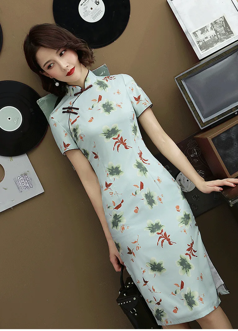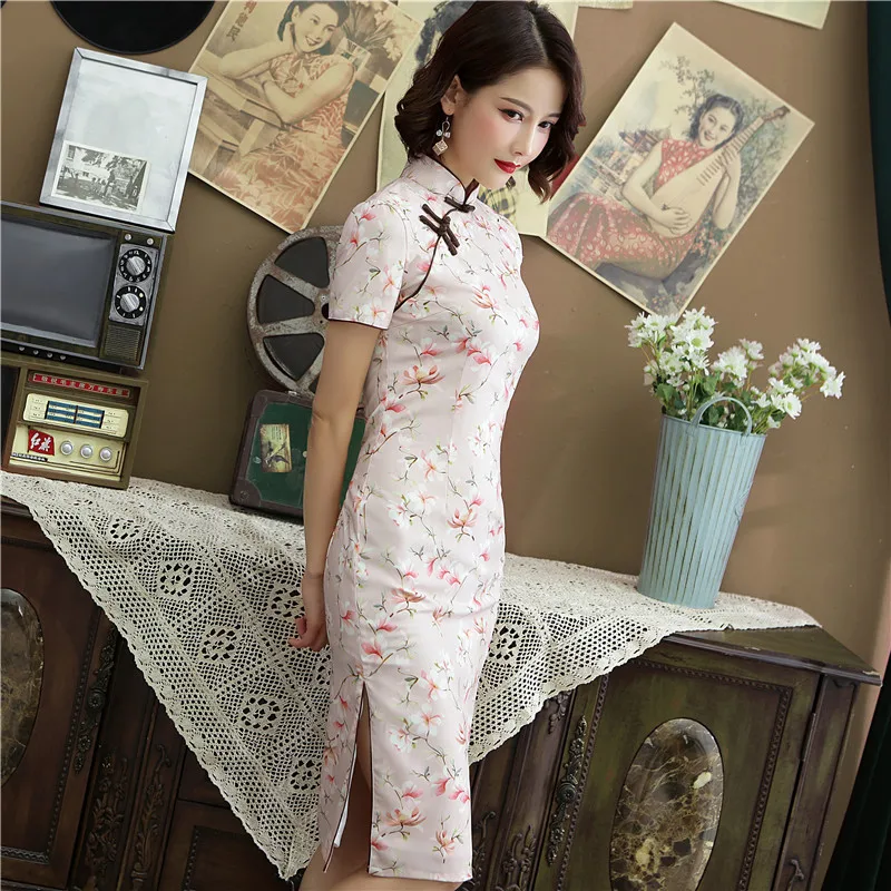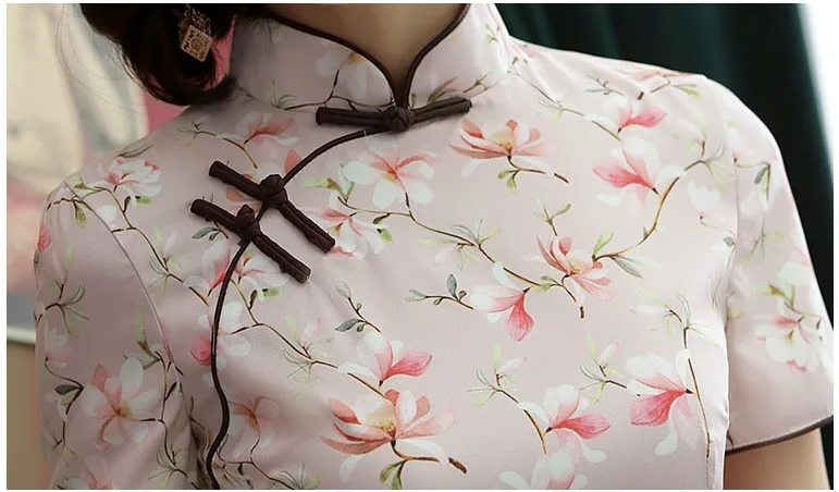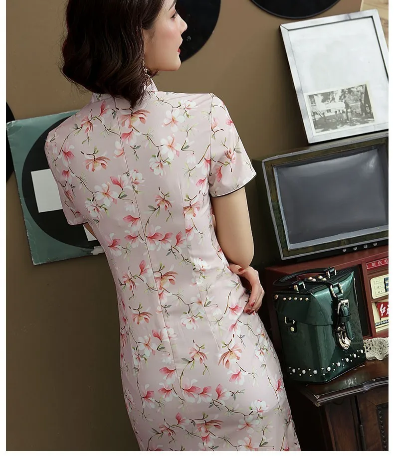 Sheng Coco новые шелковые платья Cheongsam розовые двойные китайские Qipao с принтом средней длины древний шелк Улучшенная одежда розовые цветы