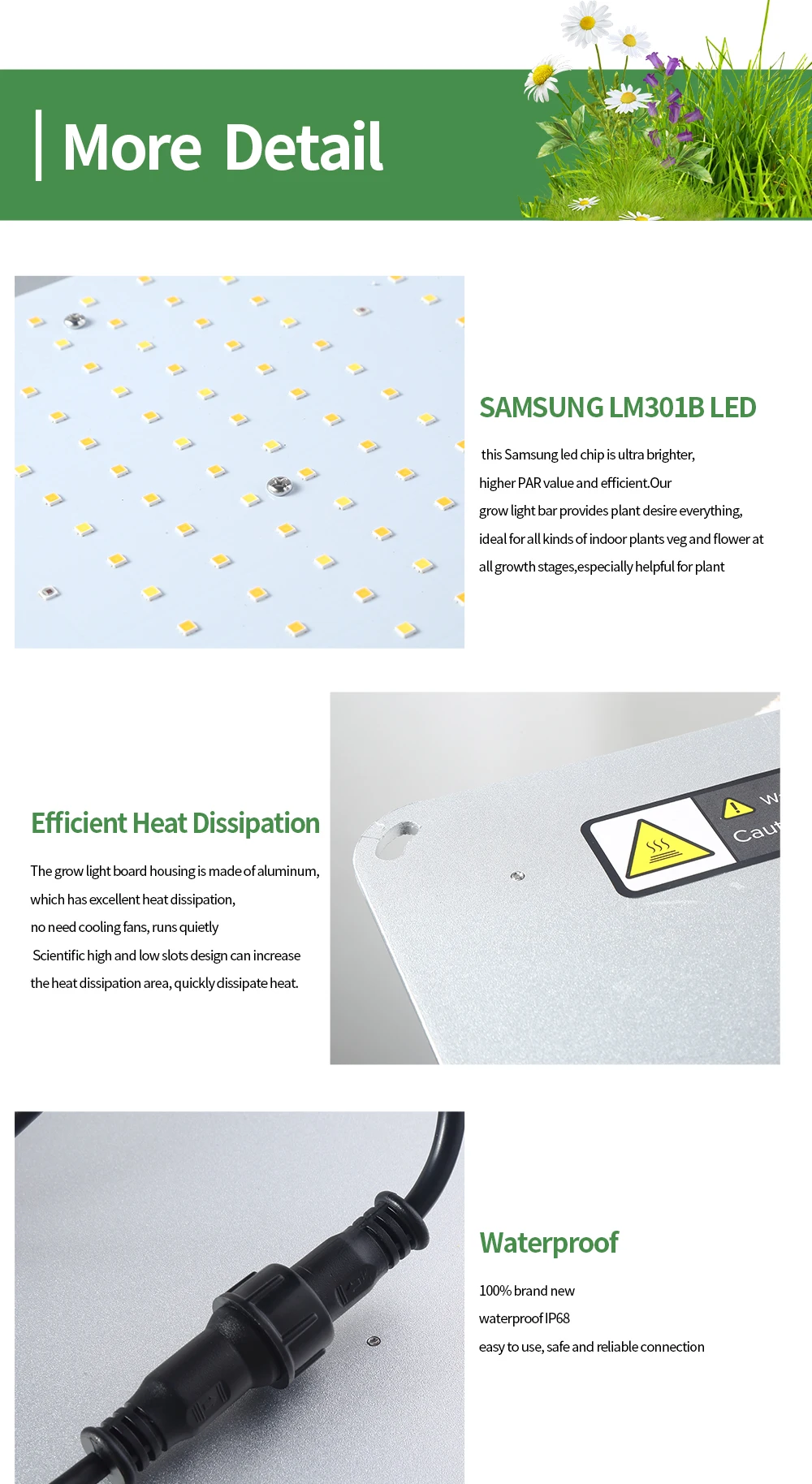 Этот светодиодный щит был подтвержден коммерческими пользователями теплиц внутри помещений, что очень хорошо и эффективно. С помощью новейшей технологии светодиодный светильник обеспечивает оптимальный спектр смесь для роста и цветения, индивидуальный микс красного и полного спектра LM301B SK Bin светодиодный чип для идеально смешанного спектра. Этот светодиодный светильник идеально подходит для растений, которым нужен более светильник, и лучший светильник для сеялки и клоны и дополнительный растительный светильник для увеличения спектра и повышения урожайности; также дополнительный рассасывающийся светильник для всех этапов роста растений.