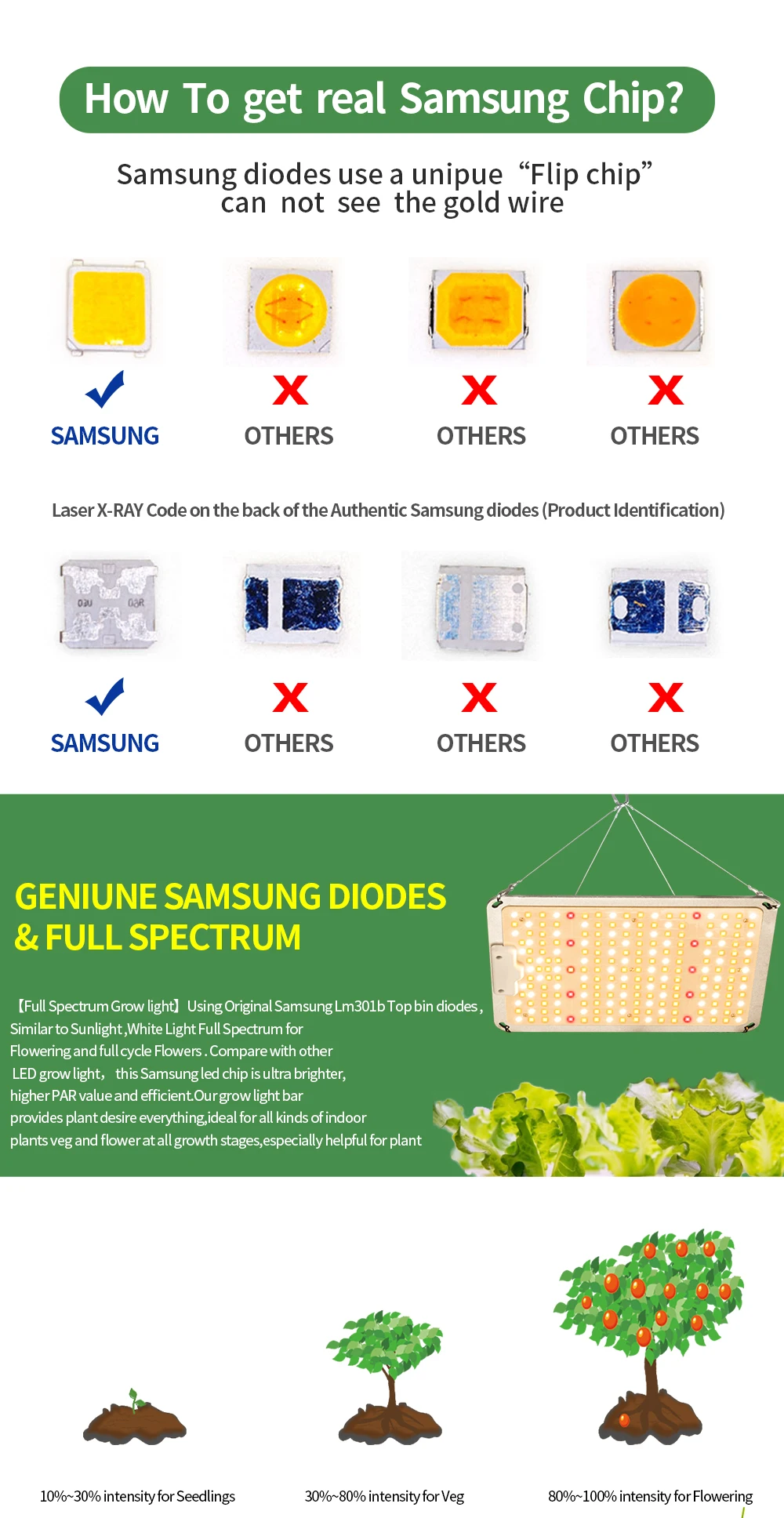 Этот светодиодный щит был подтвержден коммерческими пользователями теплиц внутри помещений, что очень хорошо и эффективно. С помощью новейшей технологии светодиодный светильник обеспечивает оптимальный спектр смесь для роста и цветения, индивидуальный микс красного и полного спектра LM301B SK Bin светодиодный чип для идеально смешанного спектра. Этот светодиодный светильник идеально подходит для растений, которым нужен более светильник, и лучший светильник для сеялки и клоны и дополнительный растительный светильник для увеличения спектра и повышения урожайности; также дополнительный рассасывающийся светильник для всех этапов роста растений.