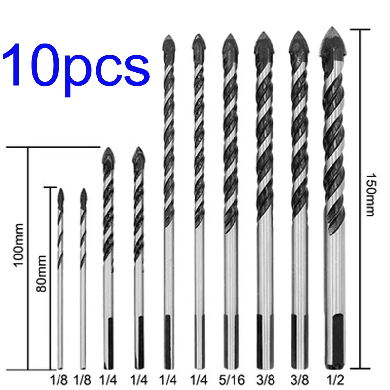* 10 шт. многофункциональный набор сверл для бетонной плитки, кирпича, стекла, пластика, дерева