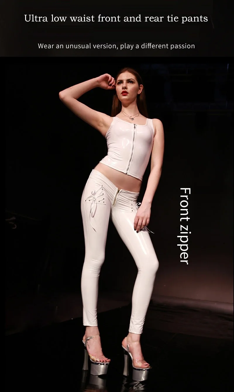 MEISE облегающие узкие брюки из искусственной кожи с низкой талией, облегающие Капри, байкерские облегающие Клубные брюки на шнуровке размера плюс 118
