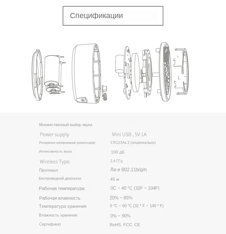 Резервный источник питания: CR123A x 2 (опционально)