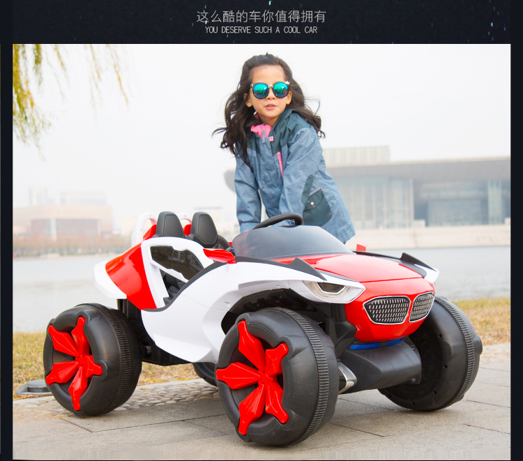 Модель 3:Четырёхколёсный вагончик с езды на автомобиле, Аккумулятор 12V7A, пульт дистанционного управления, детский привод, качающийся,