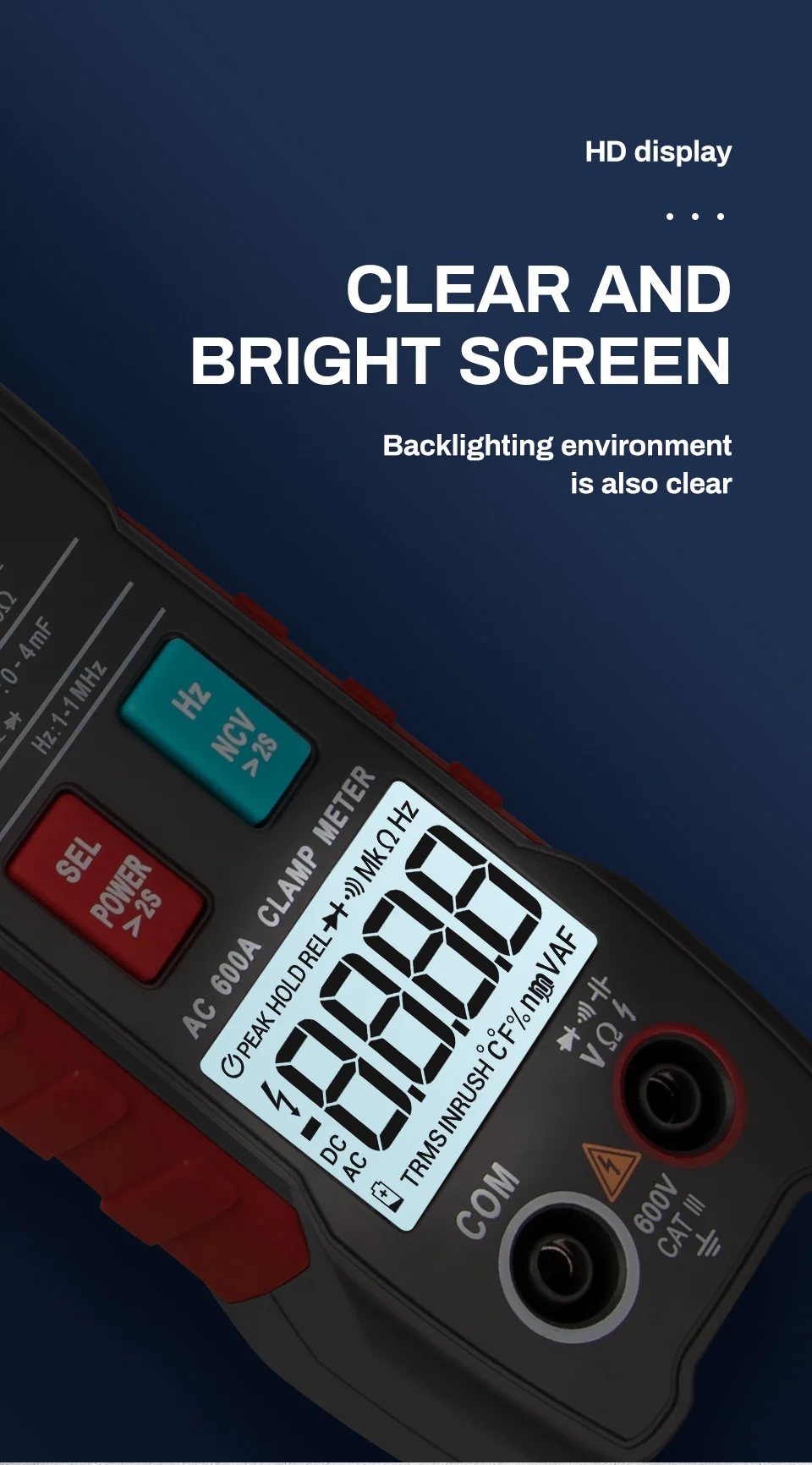 Напряжение постоянного тока DCV: Да Переменное напряжение ACV: Да Переменный ток ACA: Да Постоянной ёмкости, универсальный конденсатор измерения: Да Тест резистора/ВКЛ-ВЫКЛ: Да Измерение диода: Да (падение напряжения диода вперед. Передний ток постоянного тока составляет около 1 мА, Напряжение разомкнутой цепи составляет около 3 В) Зуммер: Да (зуммер звучит долго и сопротивление теста составляет менее (50 ± 20) Ω. Автоматическое распознавание (Авто) Частота F: Да Бесконтактная проверка напряжения переменного: Да Испытание на нулевую линию/пожарную линию: Да Полный символ единицы: Да Подсветка ручная/автоматическое выключение: Да Истинное измерение RMS: Да Фонарь освещения: Да Бесконтактная проверка напряжения переменного тока: есть хранение