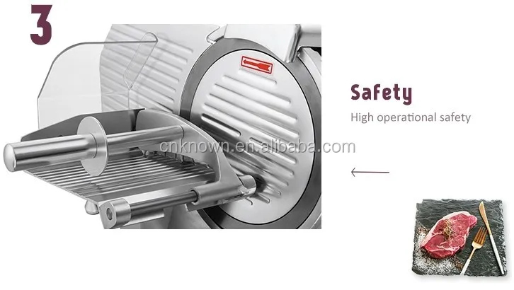 Его можно использовать для нарезания замороженного и deli мяса, ветчины, бекона, рыбы, сыра, хлеба и т. д. Основной корпус изготовлен из анодированного алюминия и лезвие изготовлено из нержавеющей стали. В этой модели используется красивый дизайн, легко использовать, безопасно и долговечно. Подходит для любого отеля, ресторана, места общественного питания, места пищевой промышленности, а также домашнего хозяйства. Использование материалов, которые отвечают всем требованиям качества пищевых продуктов, экологически чистые и не ядовитые, приятный и практичный дизайн