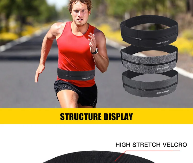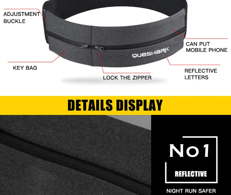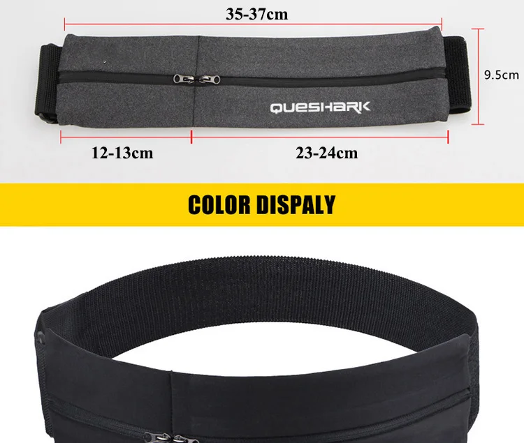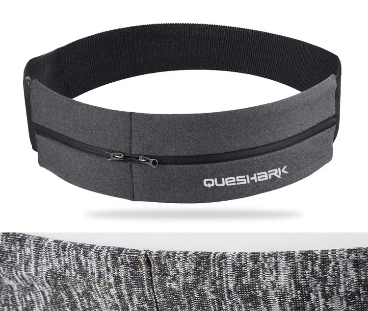 Светоотражающая сумка Queshark с двойным карманом на молнии с эластичным поясом, спортивная сумка на пояс для бега, тренажерного зала, йоги, поясной ремень, чехол для телефона
