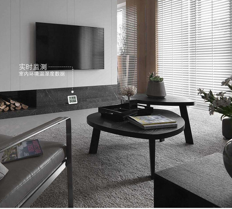 Indoor & outdoor temperature display, indoor humidity display and time display.