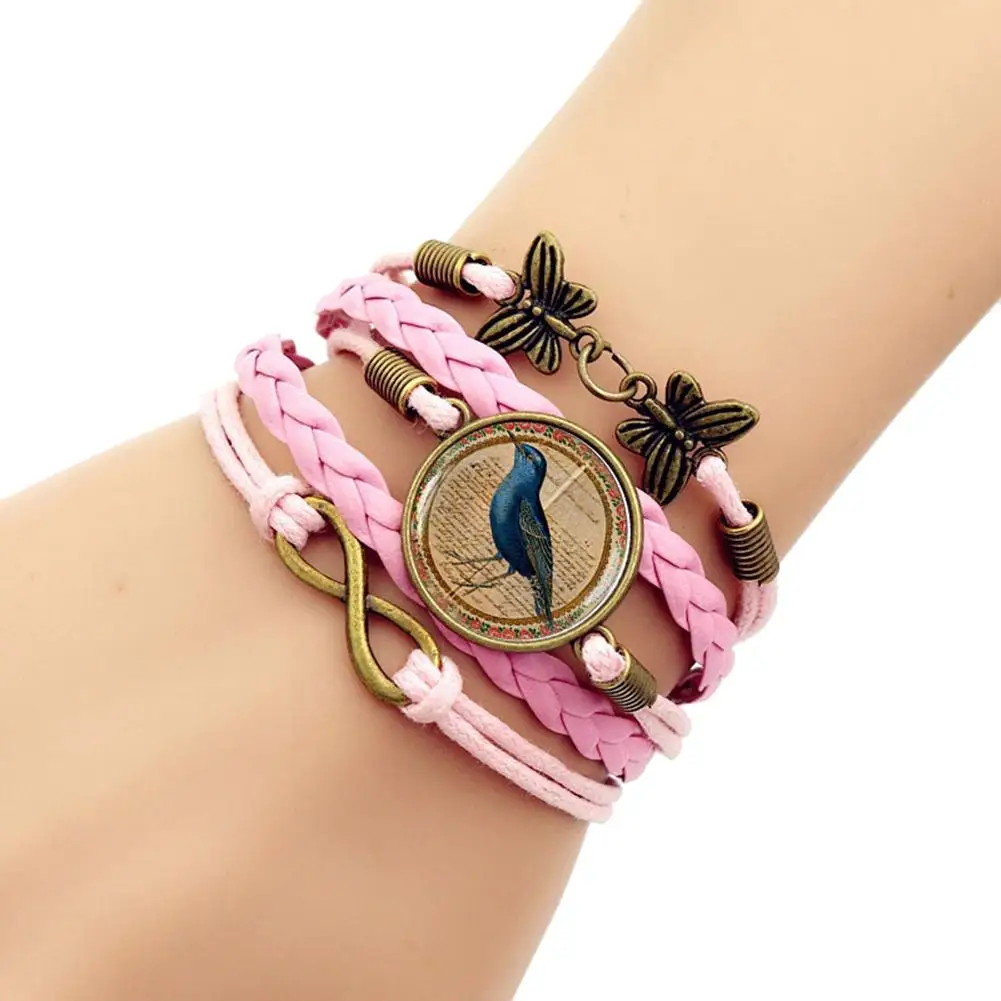 2019 Ретро Женские Браслеты Многослойные трикотажные плетеные Бабочки птица круглый кулон Богемия браслет массивные ювелирные изделия
