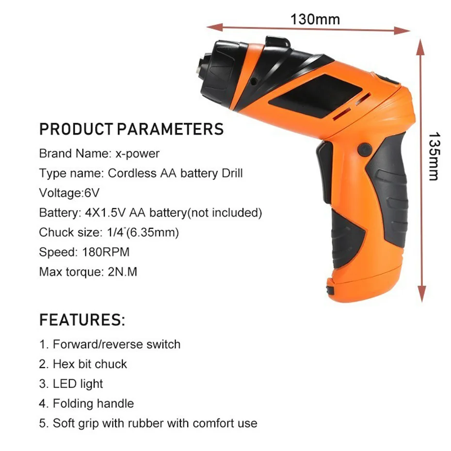 6 в электрическая отвертка беспроводная дрель мини беспроводной драйвер питания DC Батарея ремонтный набор инструментов со светодиодным светильник