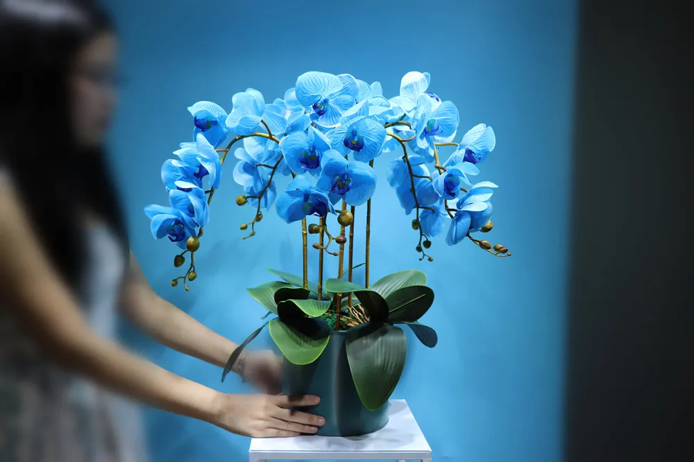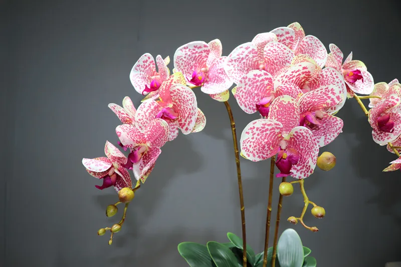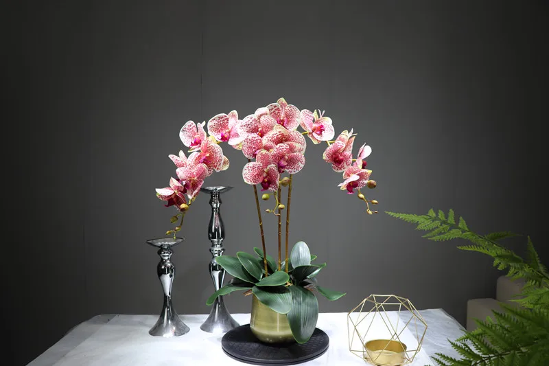Название цветка: цветы орхидеи Общая длина цветка: 90 см Длина листьев: 30 см Размер цветка: 10-14 см Материал цветка: ткань + латексное покрытие (настоящий сенсорный материал) Материал листьев: пластик Горшок: металл Доставка: Aliexpress Стандартная доставка