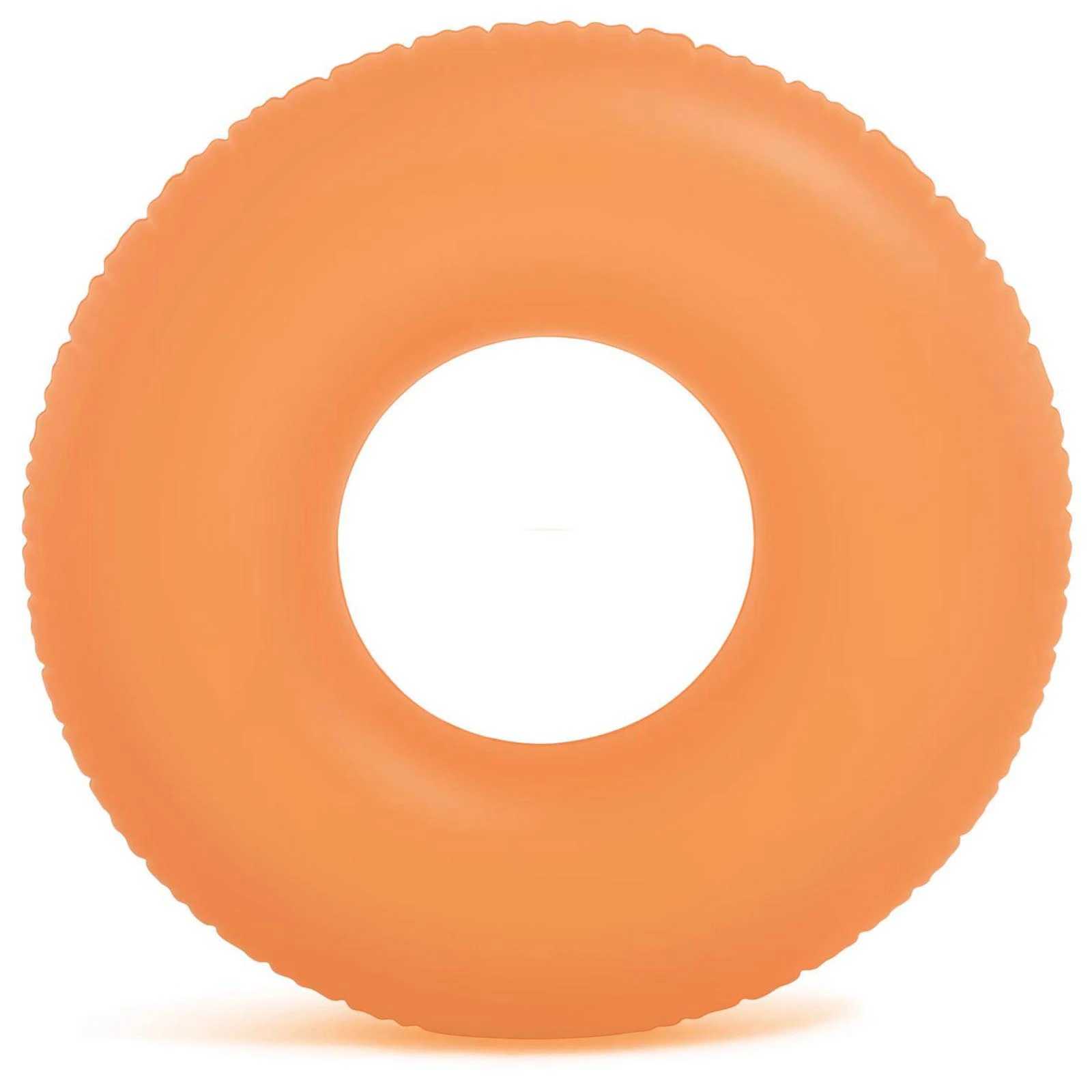 Яркий надувной круг доступен в трех цветах: салатовый, оранжевый, розовый.