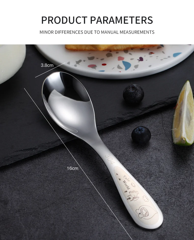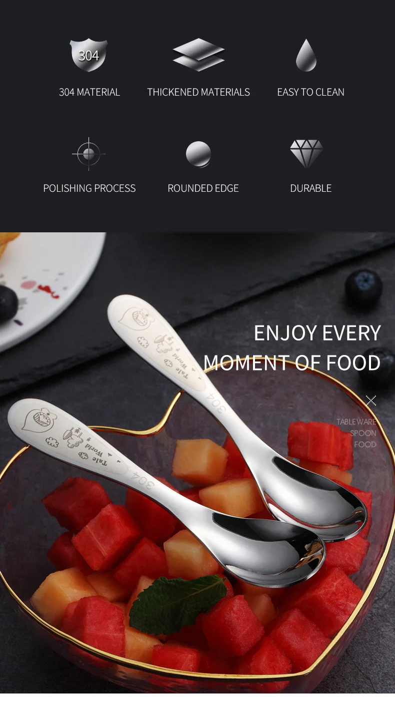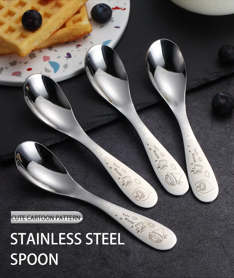 WORTHBUY 2 шт./компл. детская ложка с рисунком 304 нержавеющая сталь ложка для супа с длинной ручкой Сервировочный набор ложек кухонный ковш для супа