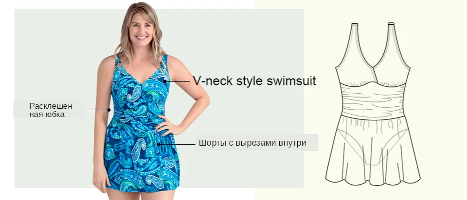 [Купальник с утягивающим поясом] Утягивающий сетчатый подклад делает фигуру визуально стройнее и красивее, не причиняя дискомфорт. [Расклешенная юбка] Треугольный вырез, расклешенная юбка и шортики идеально корректируют вашу фигуру. [Необычный дизайн] Трапецевидный силуэт стройнит и выглядит винтажно и стильно. На лифе и талии есть сборки, а лямки регулируются под ваш рост. [Лиф без косточек] Вшитый лиф и подклад изготовлены из ультрамягкого и экологичного материала, что обеспечивает комфорт ношения. [Приятный на ощупь материал] Дышащий, эластичный и прочный материал, бархатистая текстура и изысканность швов обеспечивают мягкость купальника.