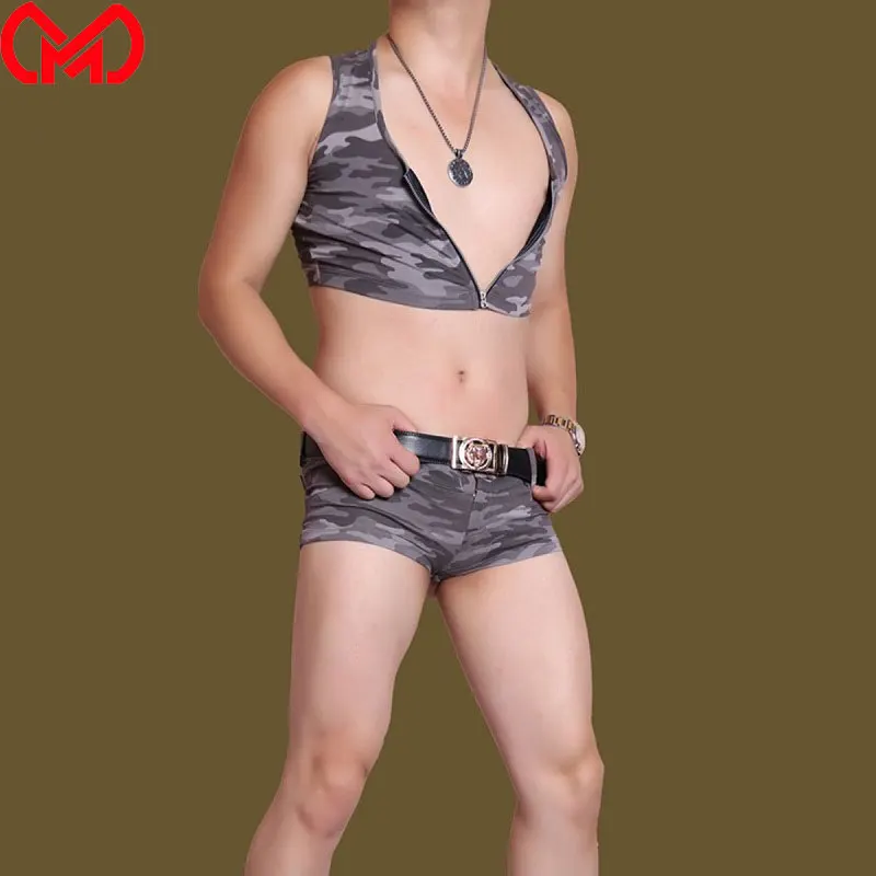 MEISE, мужские шорты из лайкры, камуфляжные, сексуальные, короткие, крутые, мужские боксеры, шорты, сценический костюм, одежда для геев размера плюс, F46