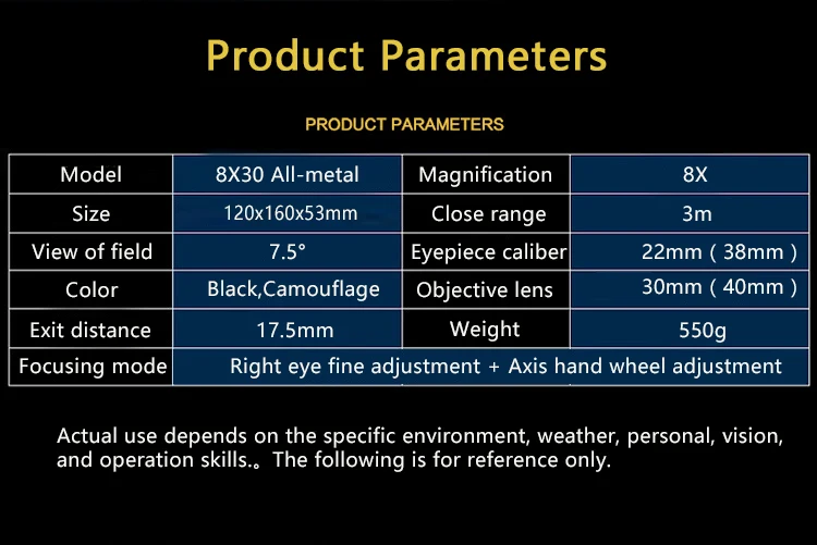 8X30 водонепроницаемый бинокль Hd, бинокль с широким углом, центральный для путешествий, охоты, ночного видения