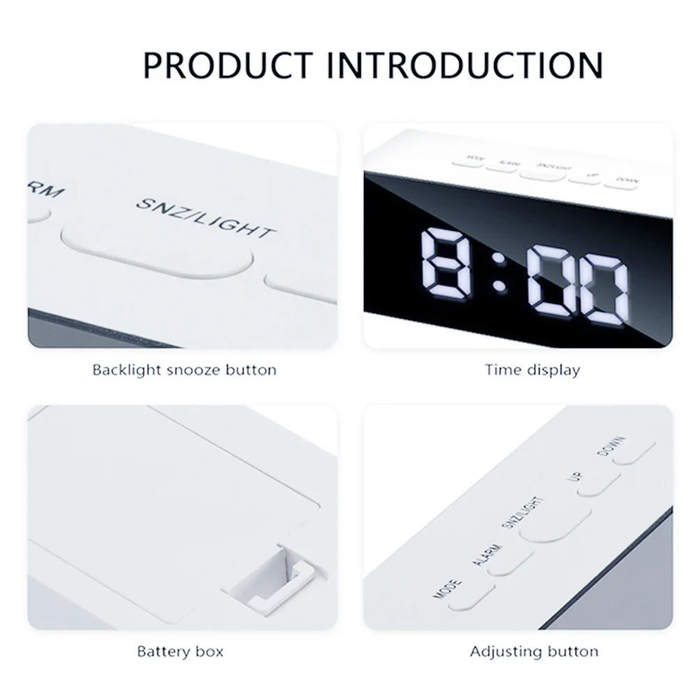 Будильник с зеркалом со стильным внешним видом можно использовать как зеркало, идеально подходит для домашнего декора и ежедневного использования.