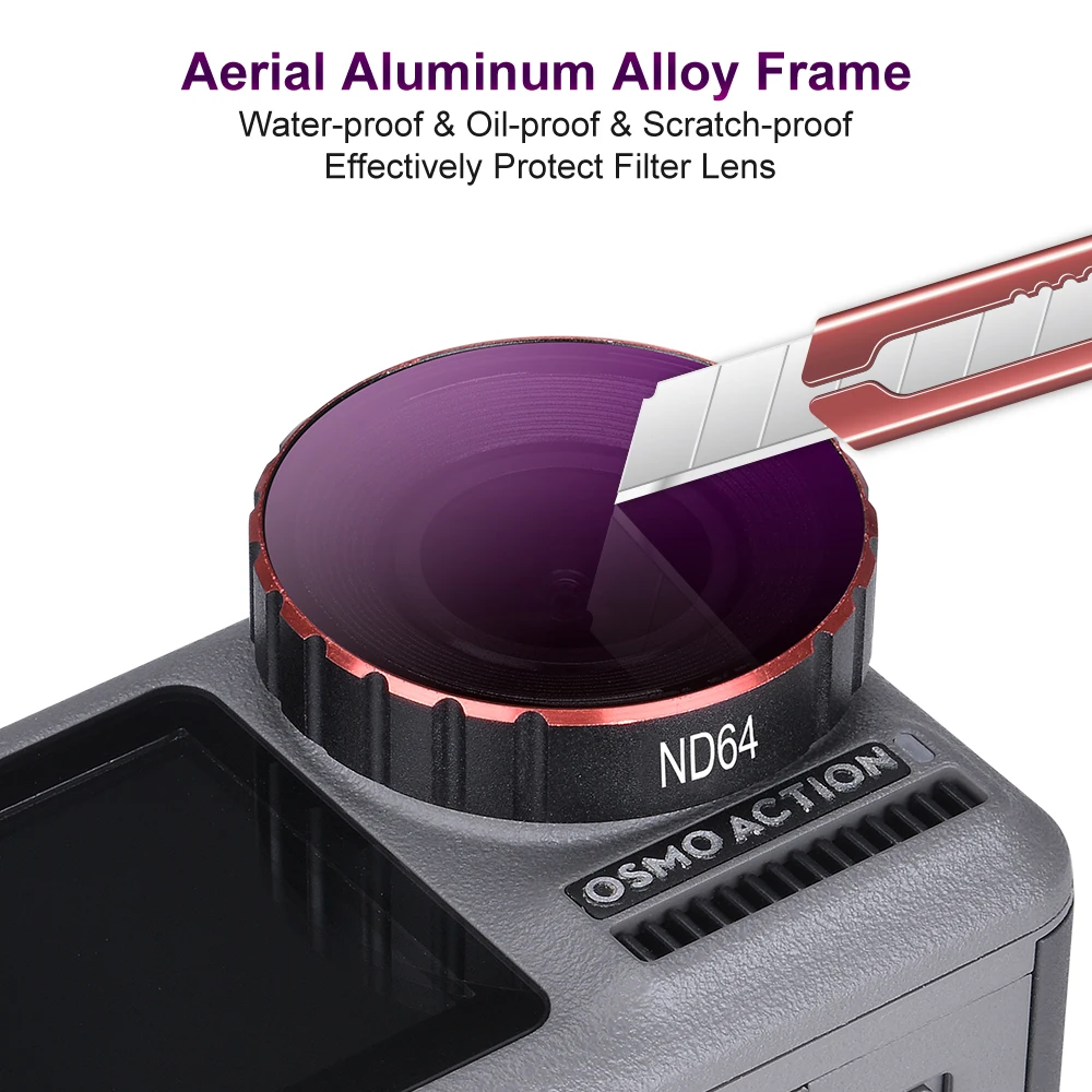 Оптический Стекло: 16 слоев Премиум многослойный оптический Стекло Водонепроницаемый, защита от царапин, защита от пыли, маслостойкая Конструкция: карданный безопасный авиационный супер легкий алюминиевый обработанный на станке с ЧПУ Строительная рама Что входит в комплект: ND64 Установка: эффективная винтовая система для легкого крепления/отсоединения Сделано для использования с экшн-камерой DJI Osmo