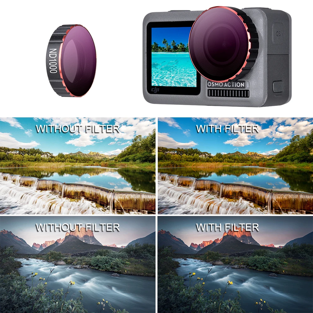 Более высокое значение ND, более заметный эффект уменьшения света. Он уменьшает количество света в очень ярких условиях, так что камера может выбрать правильное значение экспозиции и избежать чрезмерного воздействия. Он также улучшает насыщенность цвета изображения, делает изображение более прозрачным и живым. Вы также можете использовать медленную скорость затвора, чтобы снимать некоторые специальные эффекты, такие как туман воды, Световая дорожка в ночное время и т. Д. При съемке видео при непосредственном солнечном освещении вы можете уменьшить скорость затвора с помощью фильтров ND, так что видео имеет соответствующий размытие движения и выглядит сбалансированным.