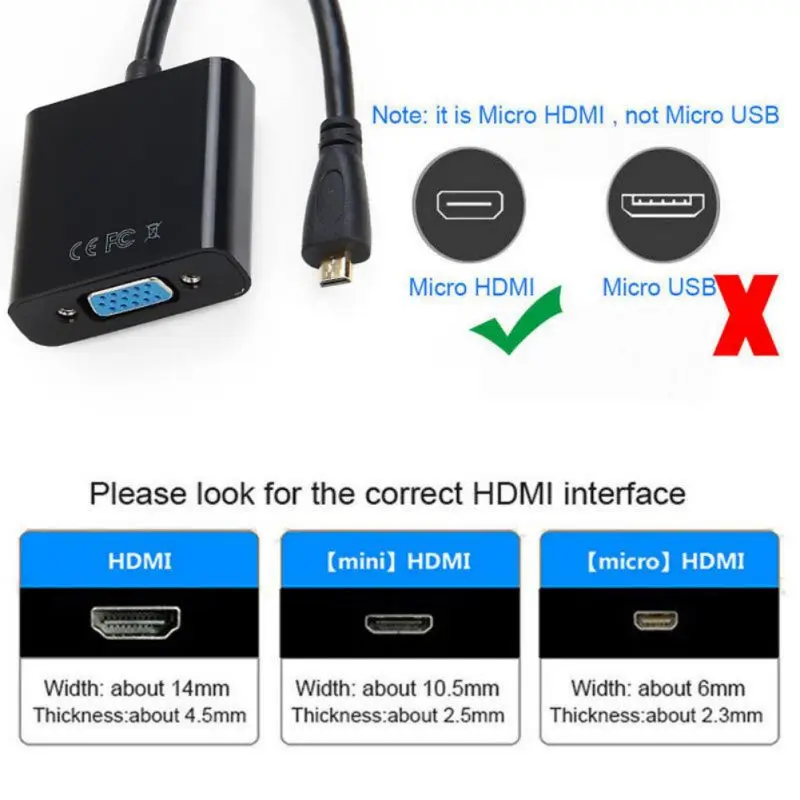 3. Адаптер micro HDMI male-VGA female оснащен встроенным активным чипом IC для достижения лучшей совместимости.