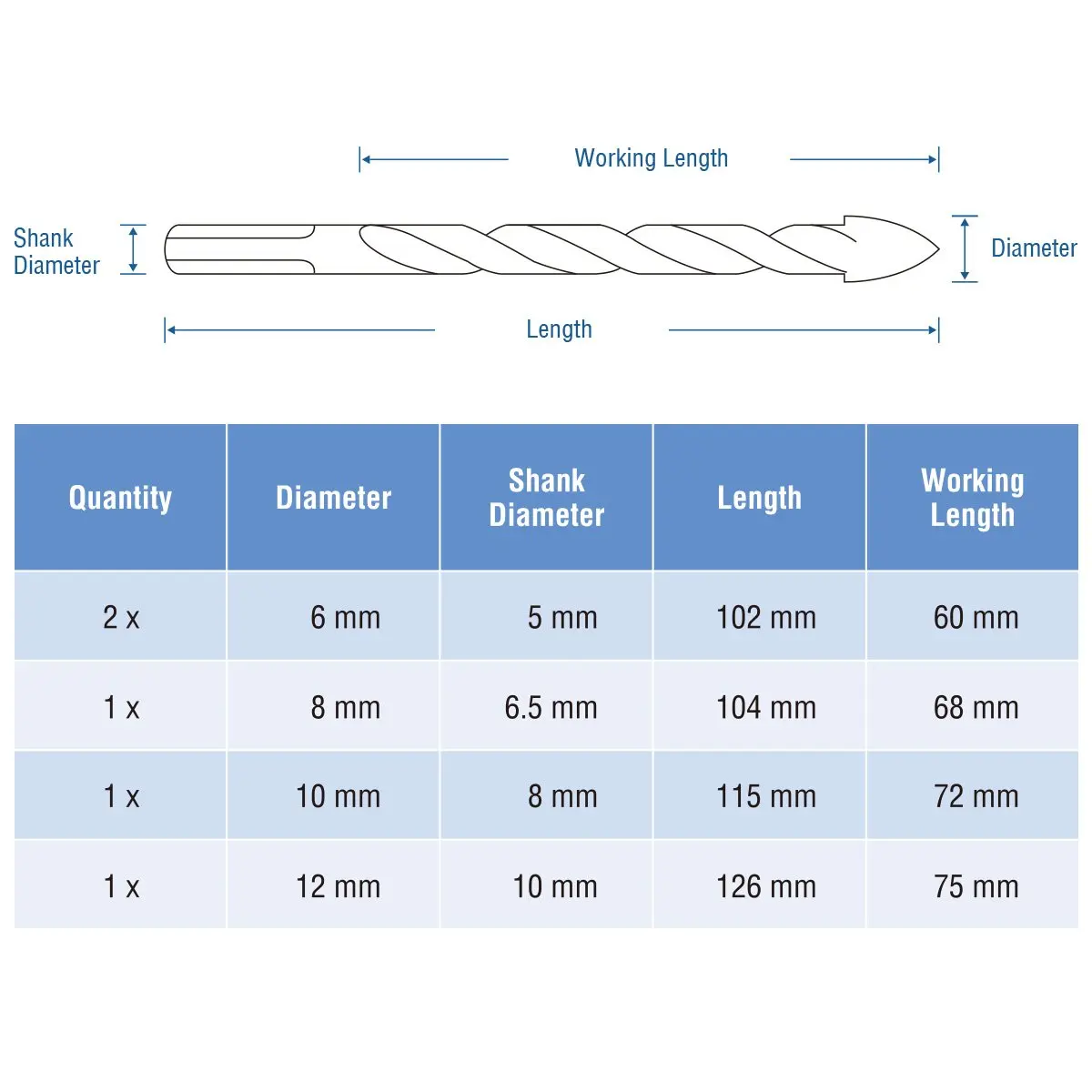 Количество посылка: 5 шт., 2x6 мм (1/4 "), 1x8 мм (5/16"), 1x10 мм (3/8 "), 1x12 мм (1/2")