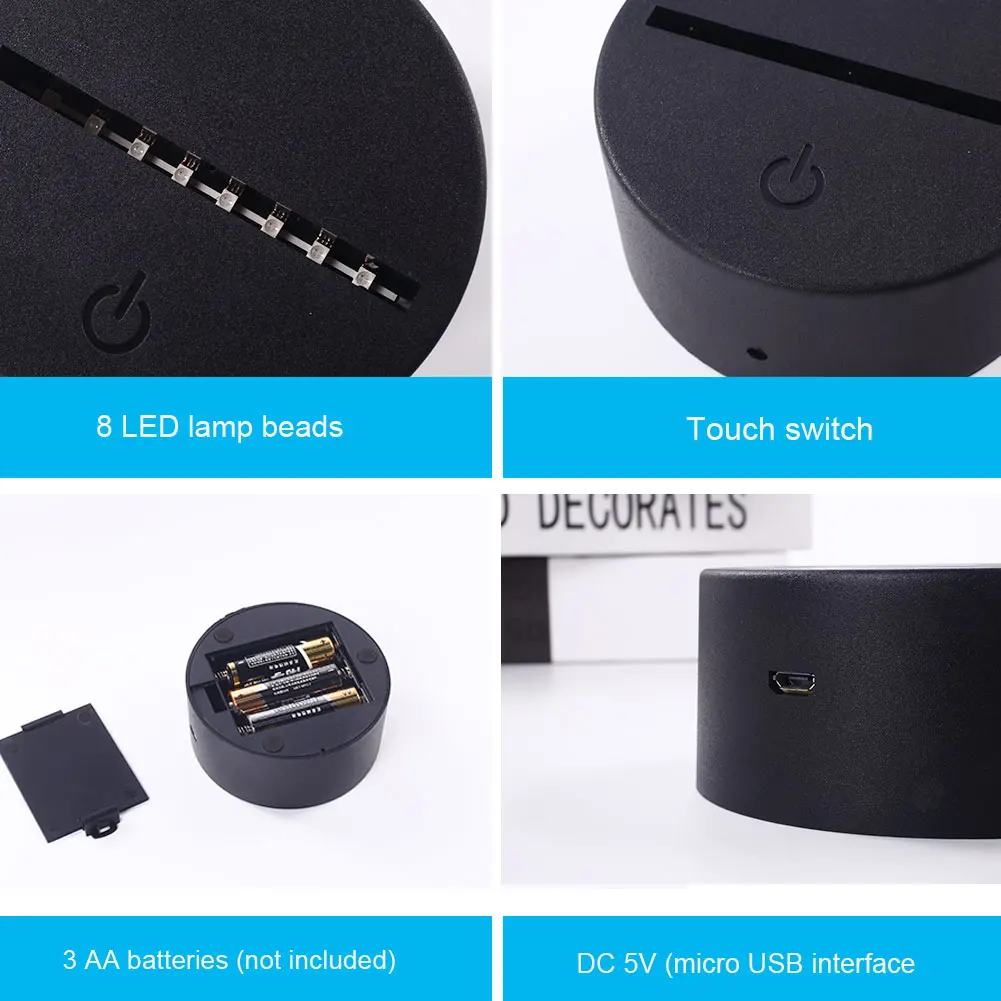 3D эффект: в светильник вставьте акриловую пластину (только держатель лампы в посылке, за исключением акриловой панели)