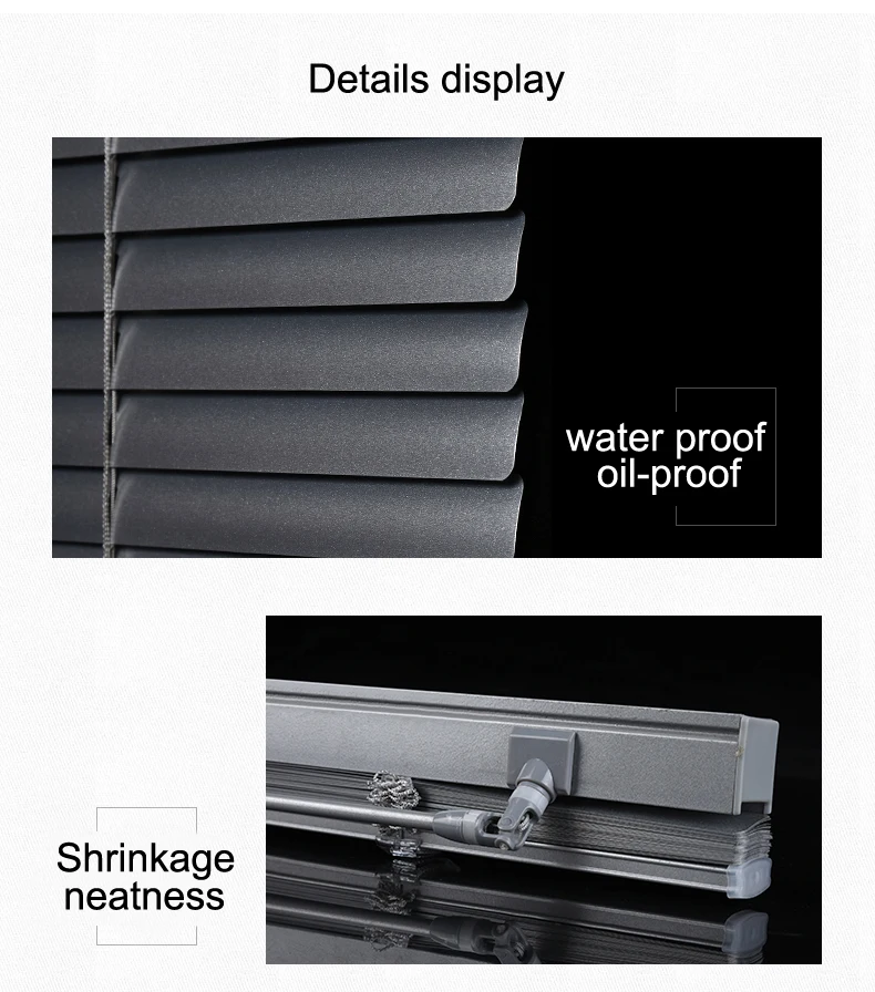 ★Легкий контроль открытия и закрытия лезвия, безошибочный контроль требований к освещению. ★Полное закрытие: высокая степень затенения, делает сон более качественным. ★Легкое открытое лезвие Leaf blade s: Сделайте внутренсветильник щение мягким и более комфортным. ★Верхняя дорожка и нижний полюс имеют тот же цвет, что и алюминиевые рейки. ★Многие цвета и типы алюминиевые рейки доступны, чтобы соответствовать стилю здания и окружающей атмосфере. ★Алюминиевая Венецианская штора из алюминиевого сплава Лист. Штора может бегать вверх и вниз и переворачиваться, что регулирует и приводит к воздействию солнечного света, реализуя функцию солнечного затенения и теплоизоляции.