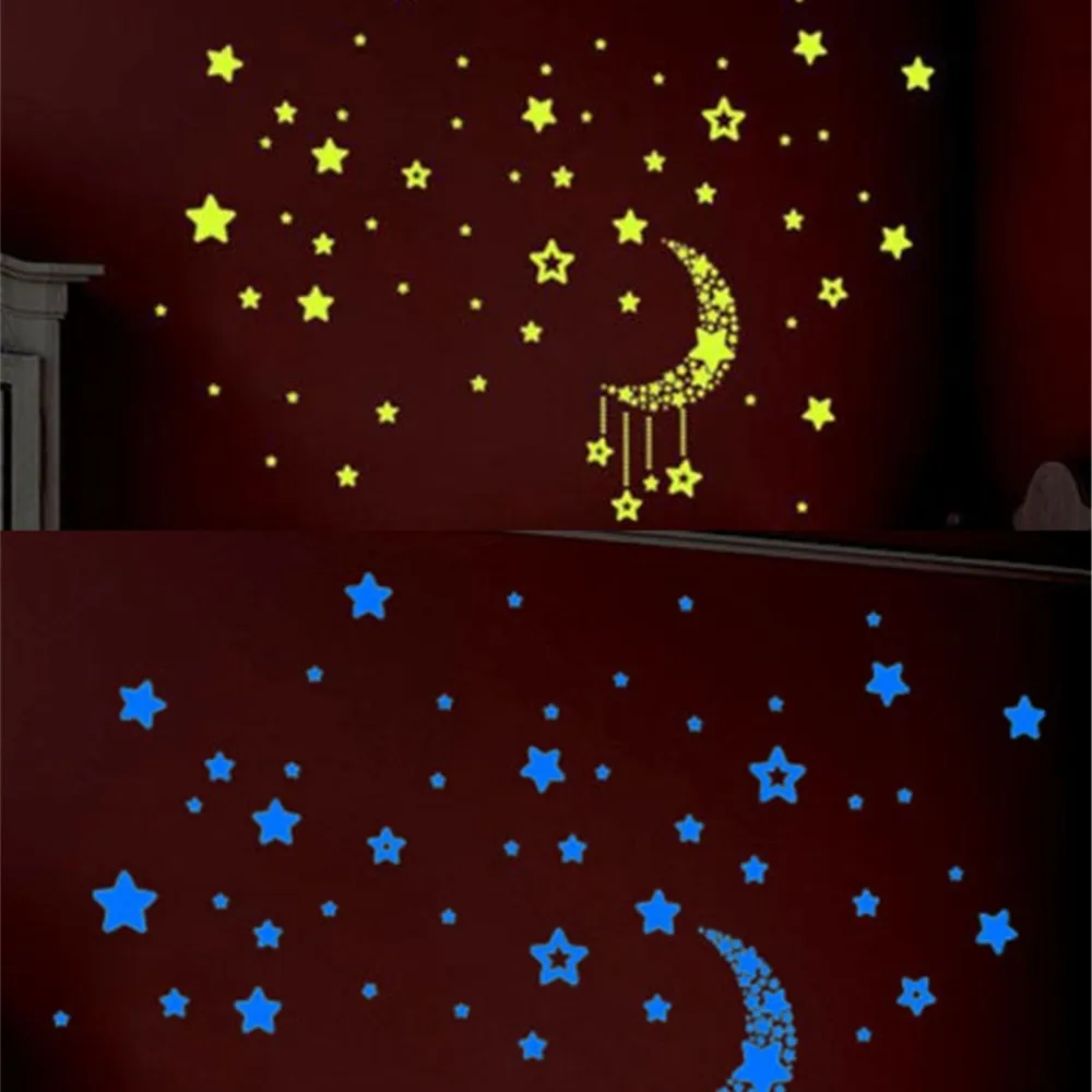 A Set Kids Bedroom Fluorescent Glow In The Dark Stars Wall Stickers