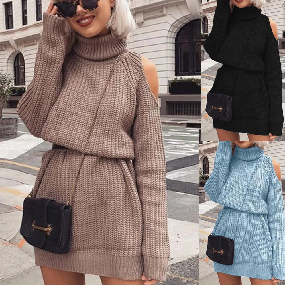 Blusa de Frio Feminina женские зимние высокие сексуальные воротник без бретелек Юбка Талия вязаный пуловер свитер Высокое качество толстый свитер