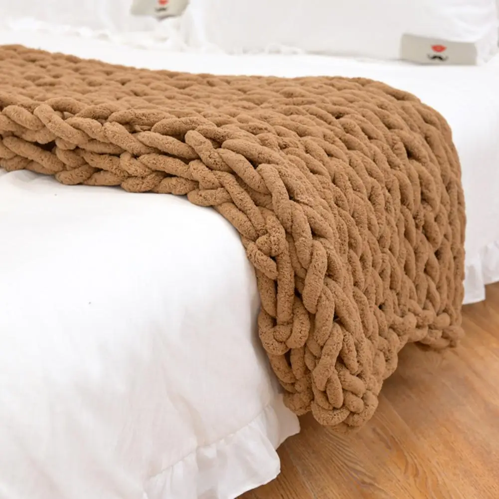 Однотонное вязаное плотное одеяло ручной работы из хлопчатобумажной пряжи, Мягкая вязаная крючком плотная пряжа для вязания теплого свитера, дивана, подушки, шарф