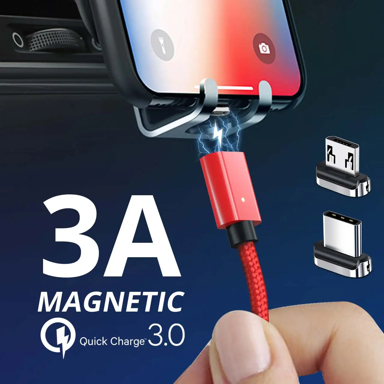 - Main Feature - Micro USB / USB C interface - Nylon braided Wire - 1m Length Black / White / red Optional - Double-Sided Charging, Support Quick Charger. - Double-Sided Data Transmission. - Stable Magneticsm, Stable Connection - One Hand Operation - More Safe When Driving - LED Indicatior Light,Easy to Use in The Night