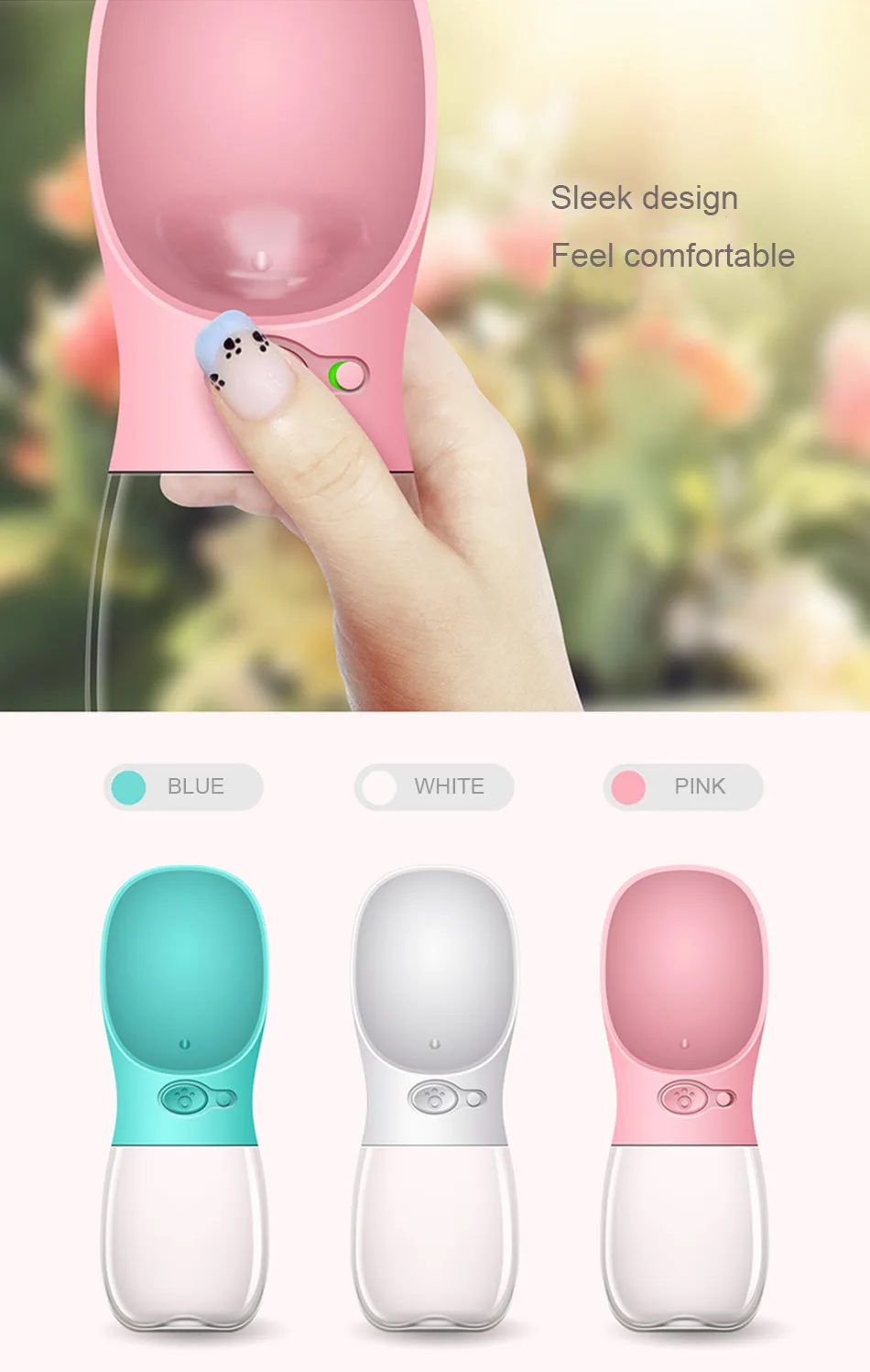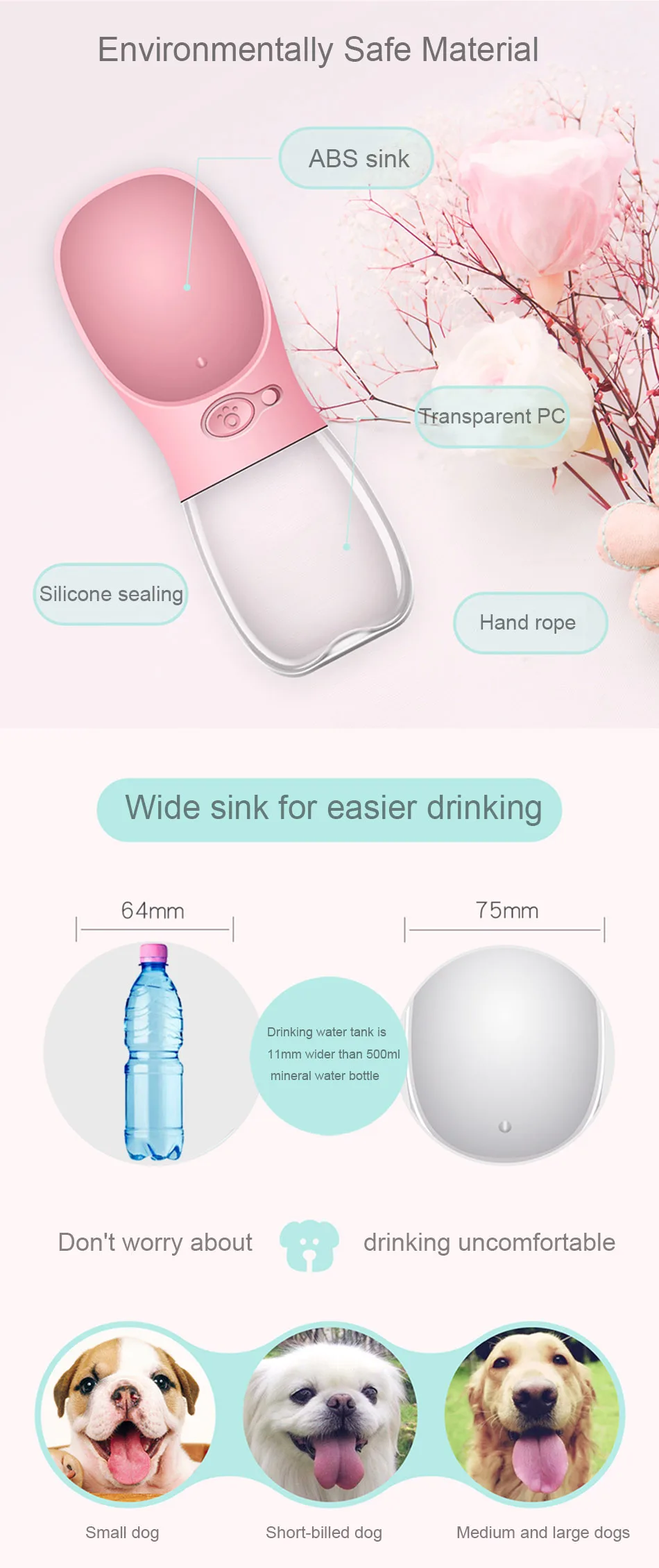 1. Высокое качество Антибактериальный пищевой АБС-материал ПЭТ бутылки воды, FDA утвержден, BPA-free. 2. Один ключ блокировки воды и уплотнительное резиновое кольцо бутылки воды для собаки, чтобы избежать утечки воды в сумке. 3. Использование одной рукой бутылки для питья щенка, легко питаться водой. 4. Легко носить с собой: вы можете взять его куда угодно. 5. Автоматическая подача воды, складная и практичная.