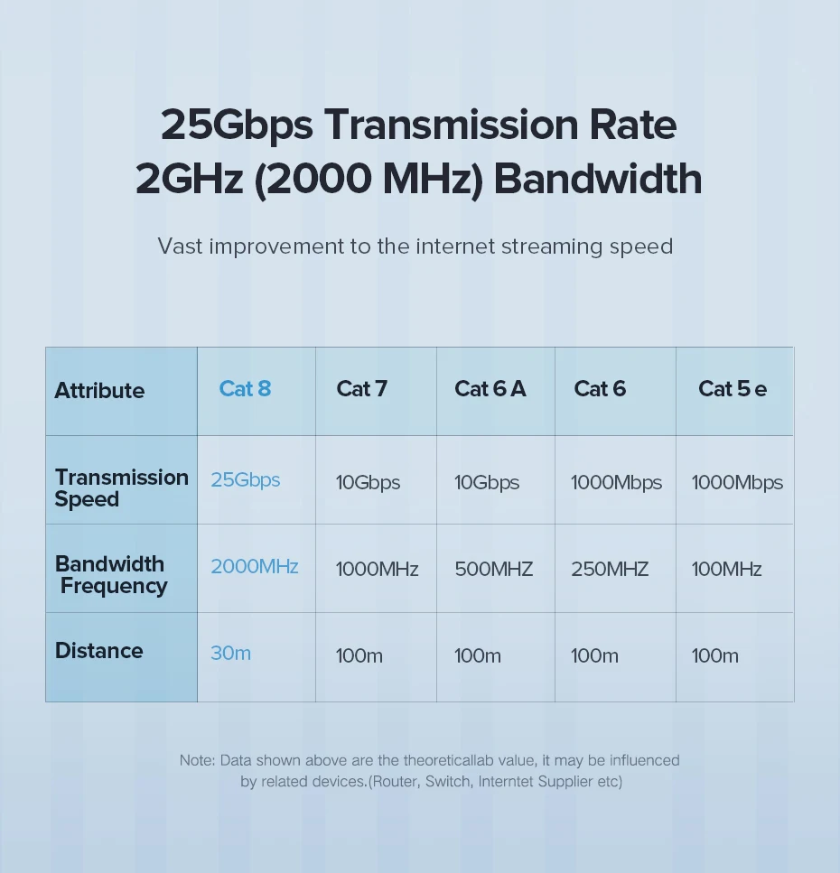 Cat8 супер Скорость Быстрая передача данных до 25 Гбит/с