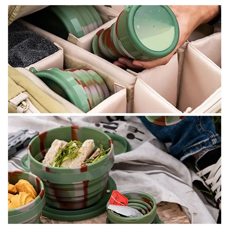 Силиконовая складная миска с крышкой