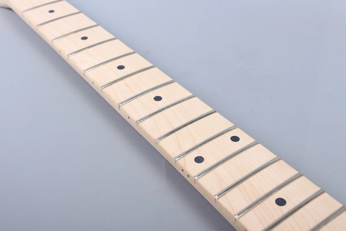 Особенности шеи электрогитары: Подходит для электрогитары Diy. Древесина шеи: Кленовая древесина Гриф древесины: клен Отделка: незавершенной Декор: точка инкрустированные Боковые точки: левая сторона точки Длина шкалы: 25,5 дюйма Если вам нужна другая длина шкалы, пожалуйста, свяжитесь со мной. Размер отверстия тюнера: около 9-10 мм" Ширина каблука: около 56 мм Лады: 24 никель/Серебро Лады Стопорной Гайкой.