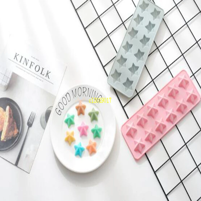 . Творческий 12 отверстиями "пятиконечная звезда" Шоколад силиконовая форма льда для льда Размеры: 25,6*9,3*1,5 см Материал: силикагель Цвет: розовый, синий Примечание: каждый размер продукта грамм вес измеряется вручную, есть определенная погрешность, обратите внимание, тщательно снимается.
