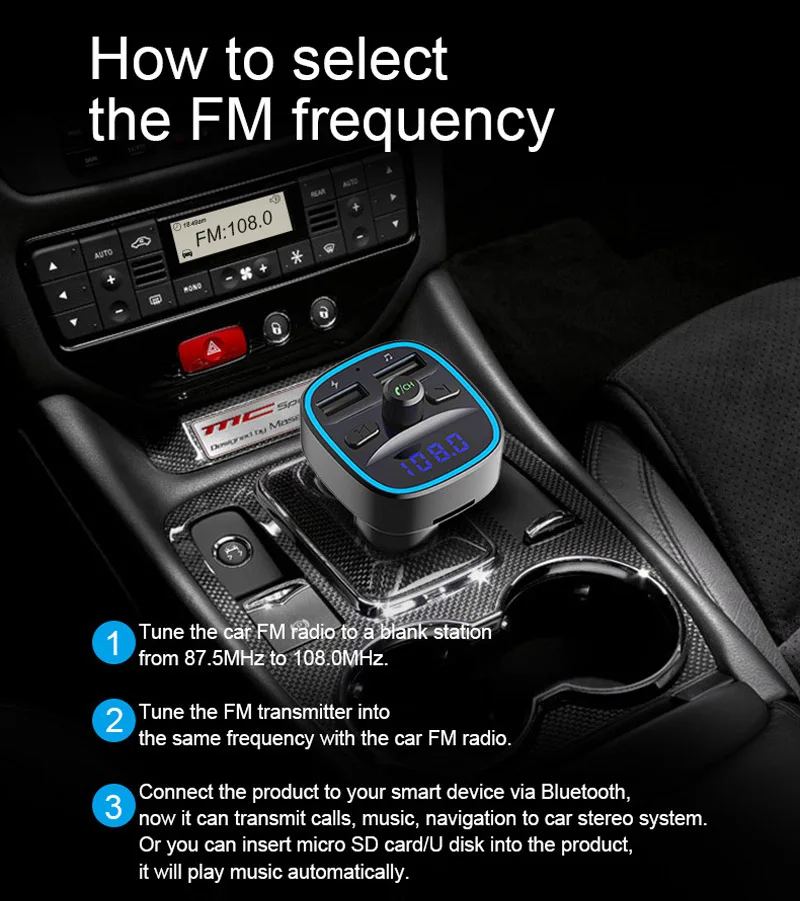 Этот продукт предназначен для автомобиля Bluetooth hands-free Автомобильное зарядное устройство mp3-плеер, с использованием высокопроизводительного bluetooth-чипа, bluetooth-соединение может использоваться для передачи MP3 музыки на ваш мобильный телефон на ваш автомобиль аудио через беспроводную передачу, И также может быть громкой связью. Вам не нужно изменять свой автомобиль, чтобы легко наслаждаться музыкой и телефонными звонками без рук во время вождения, а развлечения безопасны. 1. Это нормальное явление, что FM продукт будет иметь некоторый шум из-за помех местного радиосигнала. Найдите свободную или неинтерференционную частоту и синхронизируйте устройство Onever с этой частотой для минимизации статического шума. 2. Для достижения наилучшего качества звука, пожалуйста, установите громкость на вашем телефоне или устройстве до максимума, а затем отрегулируйте громкость для вашего автомобильного стерео; вам не рекомендуется максимально регулировать громкость вашего автомобильного динамика (это принесет много шума). 3. Предположим, что ОЗУ менее 32 Гб. Больше 32 ГБ, что может привести к аномальному чтению. 4. Наши продукты поддерживают Использование 12-24V нормальной батареи в автомобиле/грузовике, мы рекомендуем вам не использовать продукт в автомобиле/грузовике, который модифицировал батарею. Это может вызвать ожоги из-за мгновенного высокого тока. 5. Чтобы защитить это устройство, мы рекомендуем удалить его из розетки сигареты после использования, чтобы избежать мгновенного повреждения устройства от высокого напряжения. 6. Если вы хотите одновременно зарядить телефон и слушать автомобильное радио, обратите внимание, что ваша радиочастота и частота нашего устройства не слишком близки.
