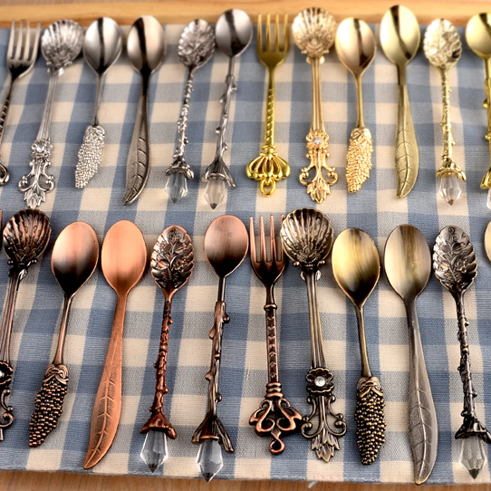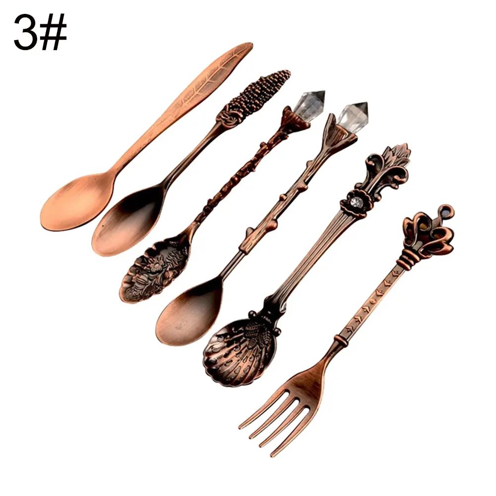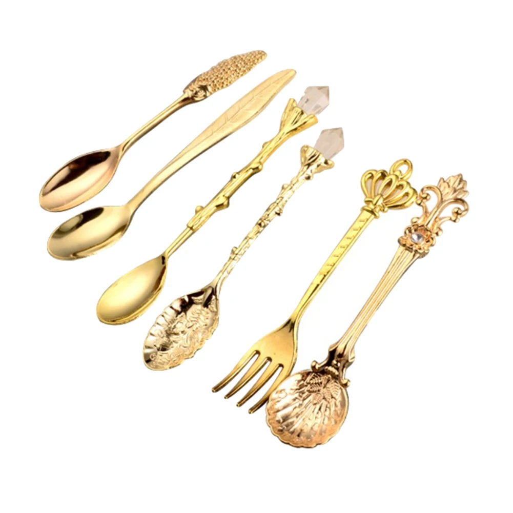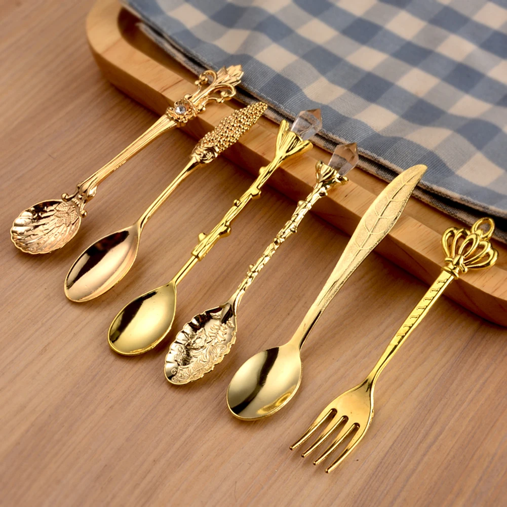 6 шт. набор посуды столовые приборы из нержавеющей стали кухонная посуда Корона скипетр голова с длинной ручкой кофе Десерт смешивания ложка Вилка