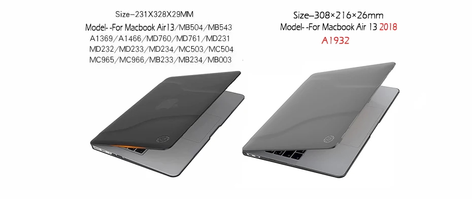 > Дорогие русские друзья, пожалуйста, оставьте нам полное имя из-за российской политики. Спасибо! Примечание: Пожалуйста, проверьте номер модели на задней части ноутбука перед размещением заказа. Модель 1: для Macbook Air 13 '' ( A1369 A1466) Модель 2: для нового Macbook Air 13 ''Touch ID 2018 (A1932) Особенности: 1. Чехол для ноутбука 2. Защищает ноутбук от пыли и царапин 3. Инновационная подставка обеспечивает различный опыт просмотра 4. Хорошо продуманная ручка, удобная и удобная на ощупь. 5. Гуманизация дизайна, дайте вашему устройству всестороннюю защиту 6. Легко установить и удалить Примечание: светильник и различные дисплеи могут привести к тому, что цвет товара на картинке немного отличается от реального.